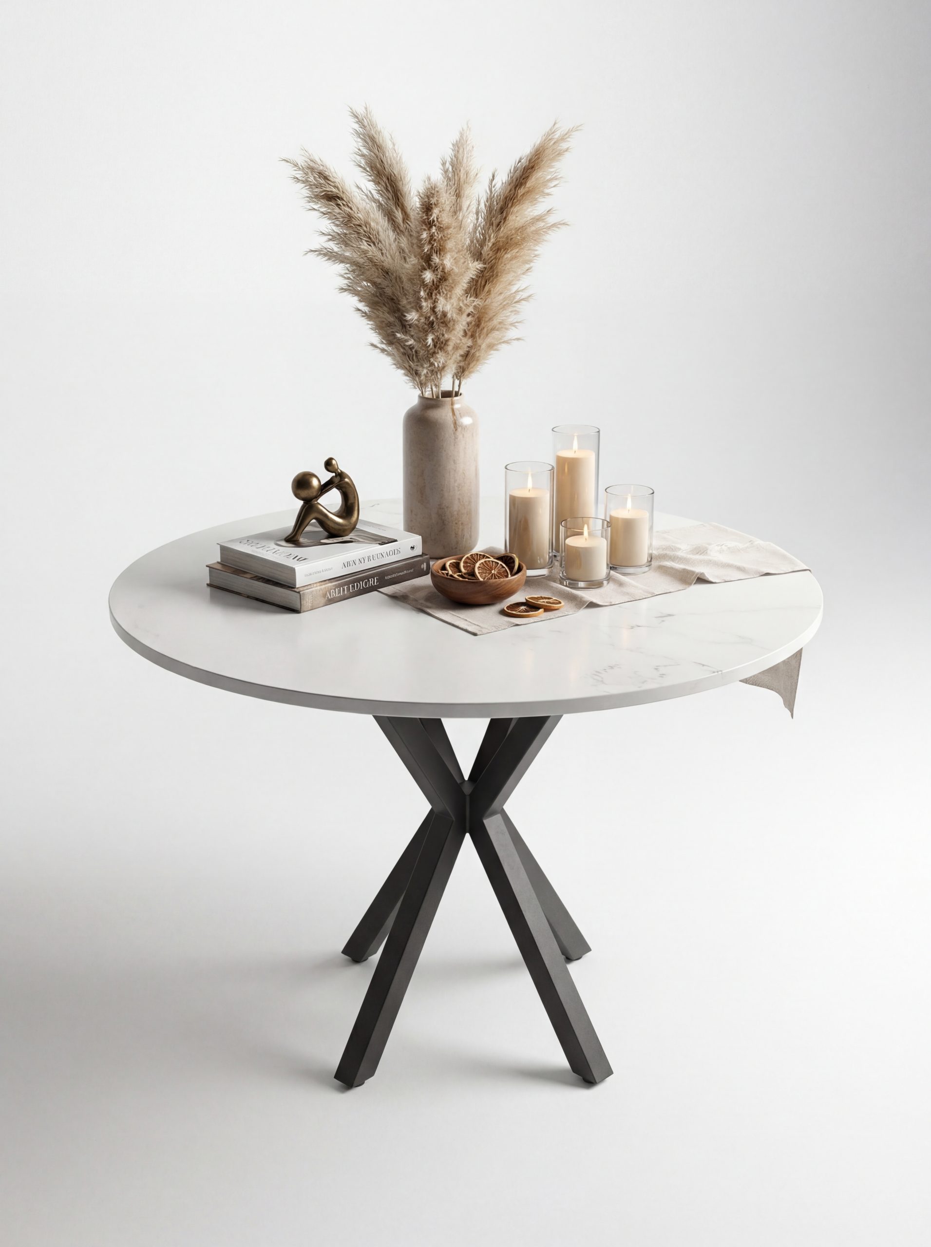Bambi Yuvarlak 1 metre çap açılır masa ekru-siyah