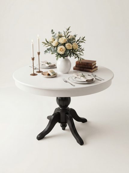 Bambi Yuvarlak 1 metre çap açılır masa ekru-siyah