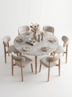 Vera Traverten baskılı yuvarlak masa(sandalyesiz)
