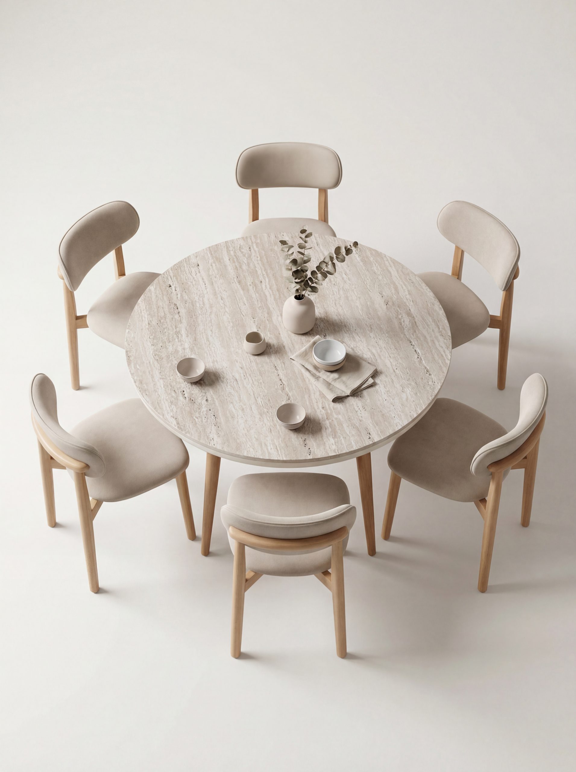Home Masalar Vera Traverten baskılı yuvarlak masa(sandalyesiz)